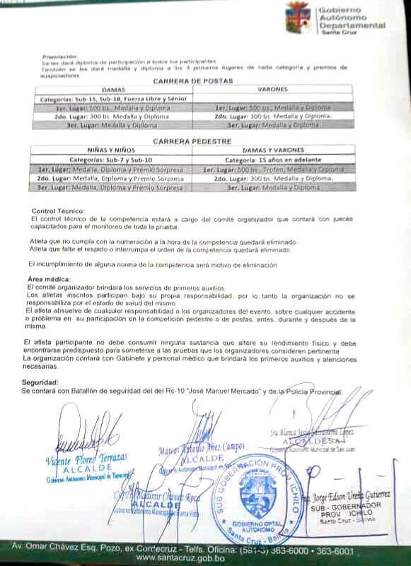 | Precio: | 5 Bs inscripción en individuales 20 Bs inscripción en postas |