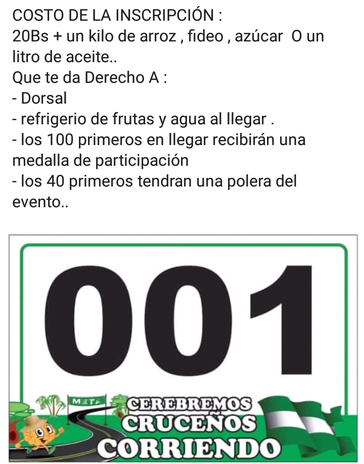 Les presentamos la 4 EDICION DE LA CARRERA DEL CEREBRO que ya es tradicional en nuestra ciudad que el costo es de :