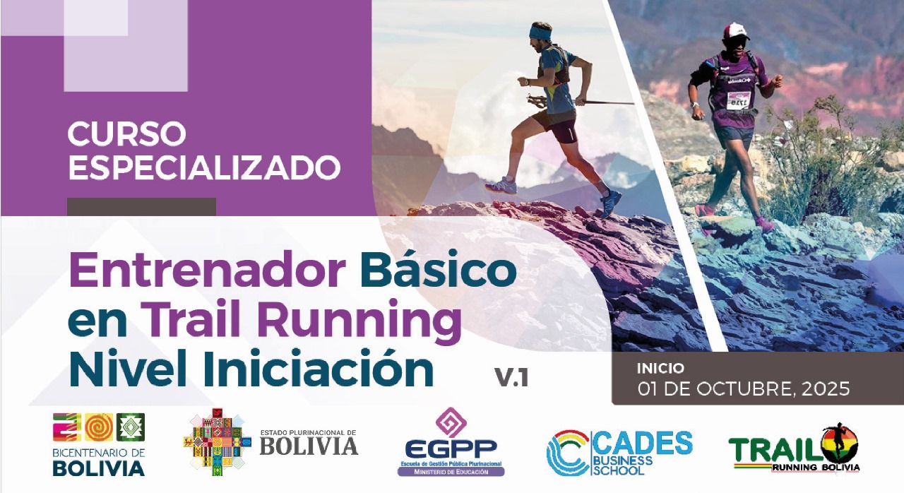 En un acuerdo sin precedentes, el Director General Ejecutivo de la Escuela de Gestión Pública Plurinacional (EGPP) Iván Iporre Salguero y Carlos Herbas Coaquira, Gerente Nacional de CADES Business School y Presidente Ejecutivo de TRAIL RUNNING BOLIVIA, anunciaron el lanzamiento del Curso Especializado – Entrenador Básico en Trail Running, Nivel Iniciación, destinado a formar entrenadores profesionales en Bolivia.