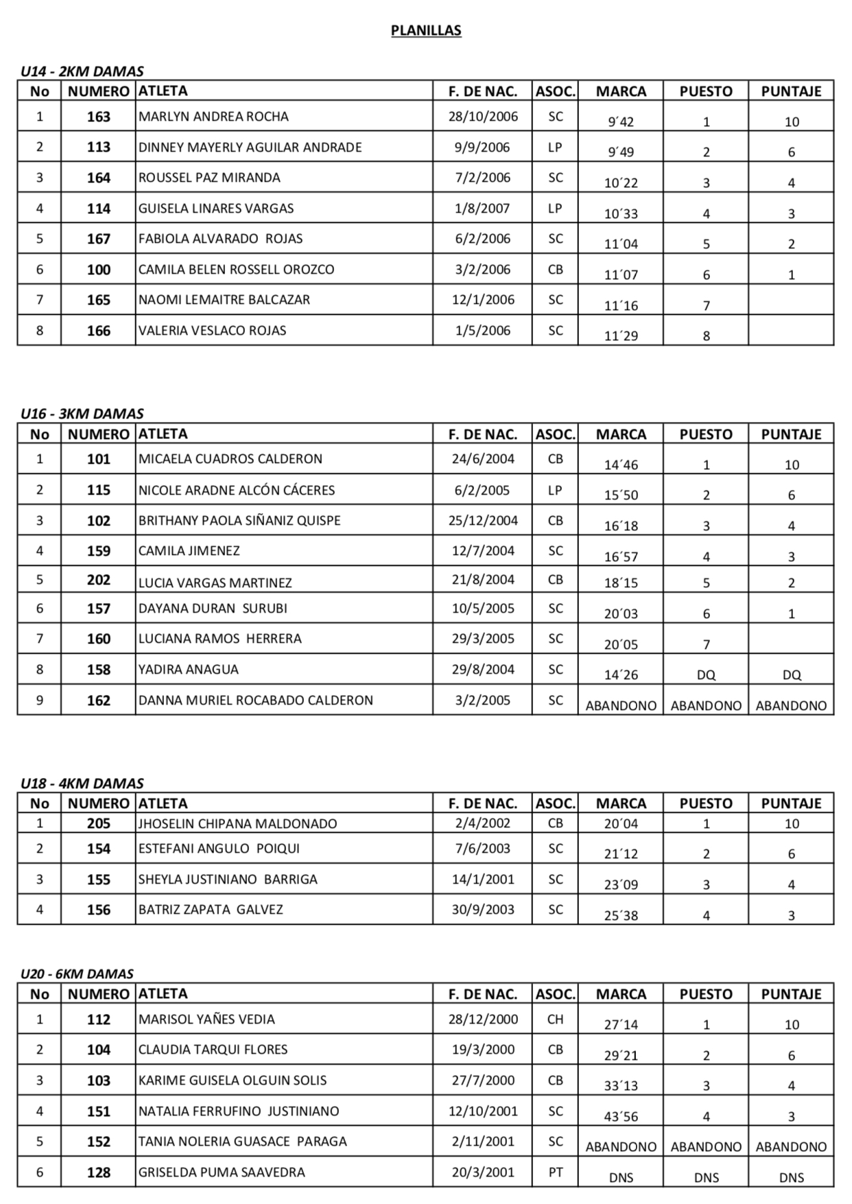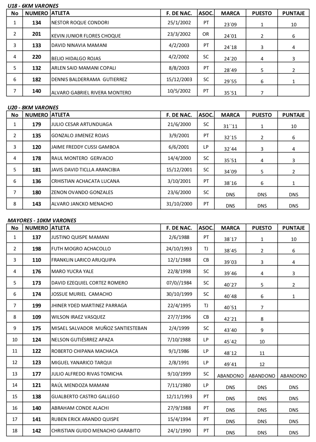 Resultados Carrera Corriendo por tu seguridad