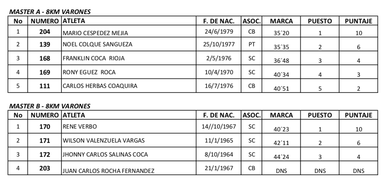 Resultados Carrera Virtual Race Compressport Bolivia SBR