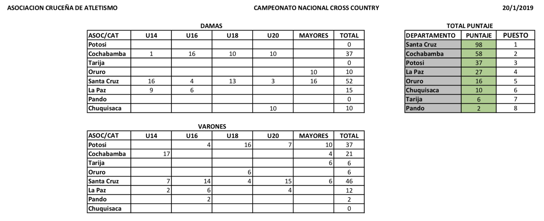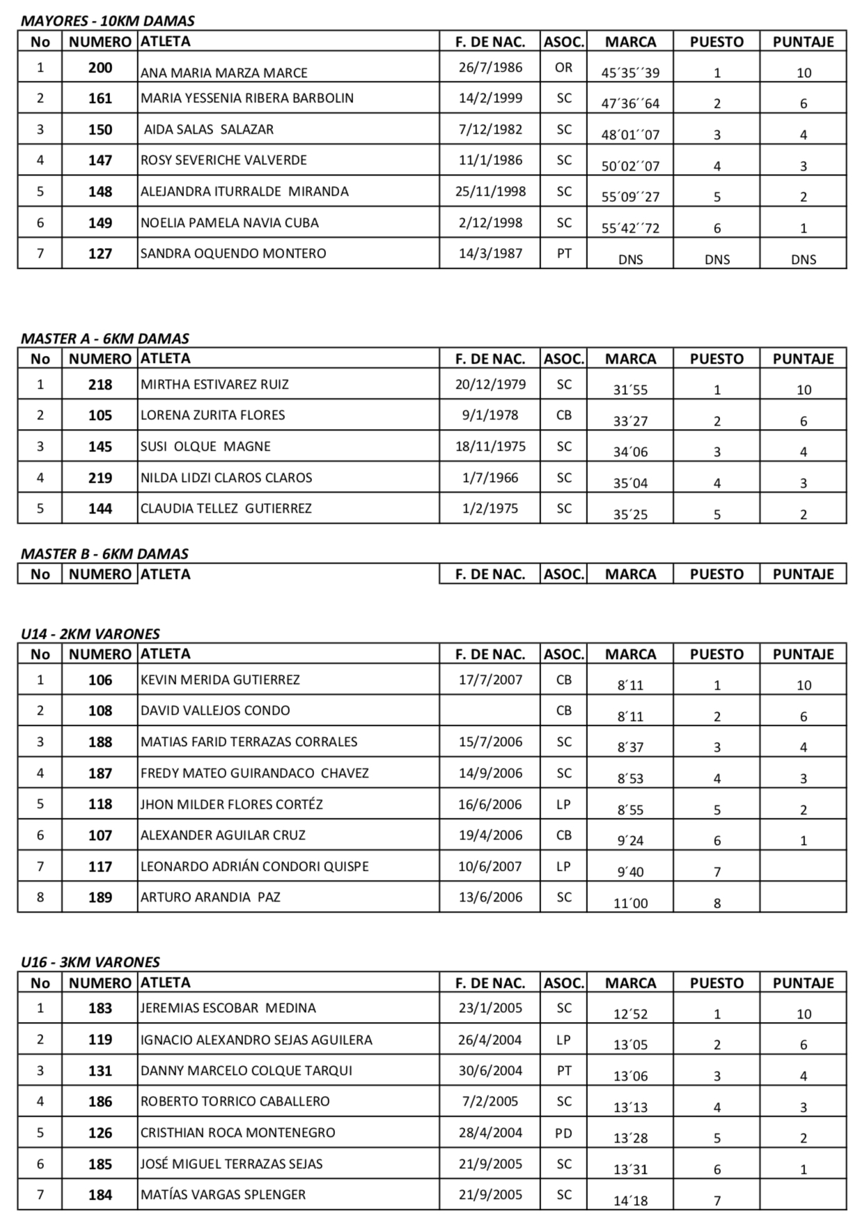 Resultados Campeonato Nacional Cross Country Santa Cruz - Bolivia